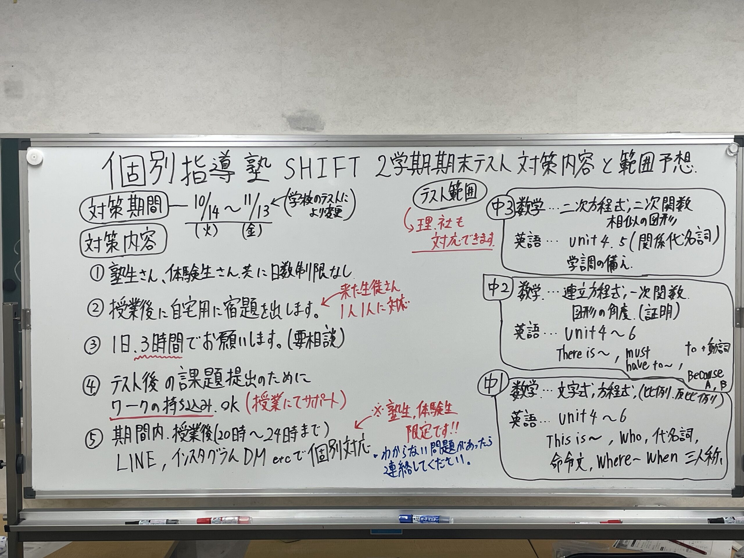 2学期期末テスト対策は、10月14日から11月13日までとなります!