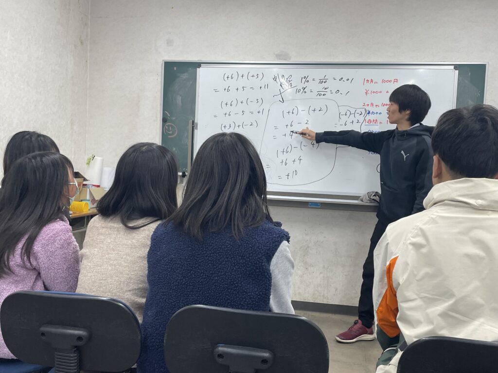 数学も、中学生になるとプラス、マイナスの計算が始まります💦初回の授業の時の写真になりますが、みんな熱心に聞いてくれていて、少しづつ出来るようになる姿は見ていてとても嬉しくなります😄1人1人、ペースが違いますのでそこは1人1人に合わせて進行します‼️また、小学生の授業内容で中学でも使う内容(分数、少数、速さ、時間、道のり、比例etc)も復習をしています😁出来る限り、知識を蓄えた状態で中学生に進学してもらえるように努力致します😊