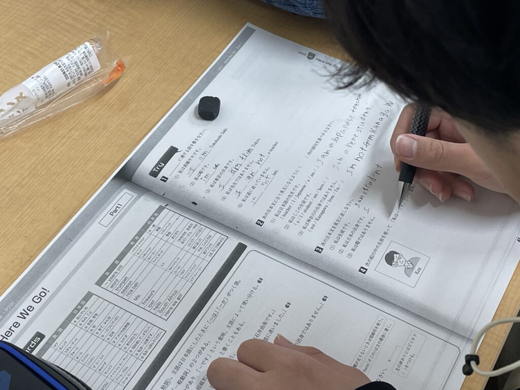 写真のように英語は教科書内容の予習を兼ねて単語や文法を少しづつわかりやすいようにご指導しています😁小学生の英語の授業でも文法や単語は行っていますが、その復習も兼ねて少しづつ進めています。