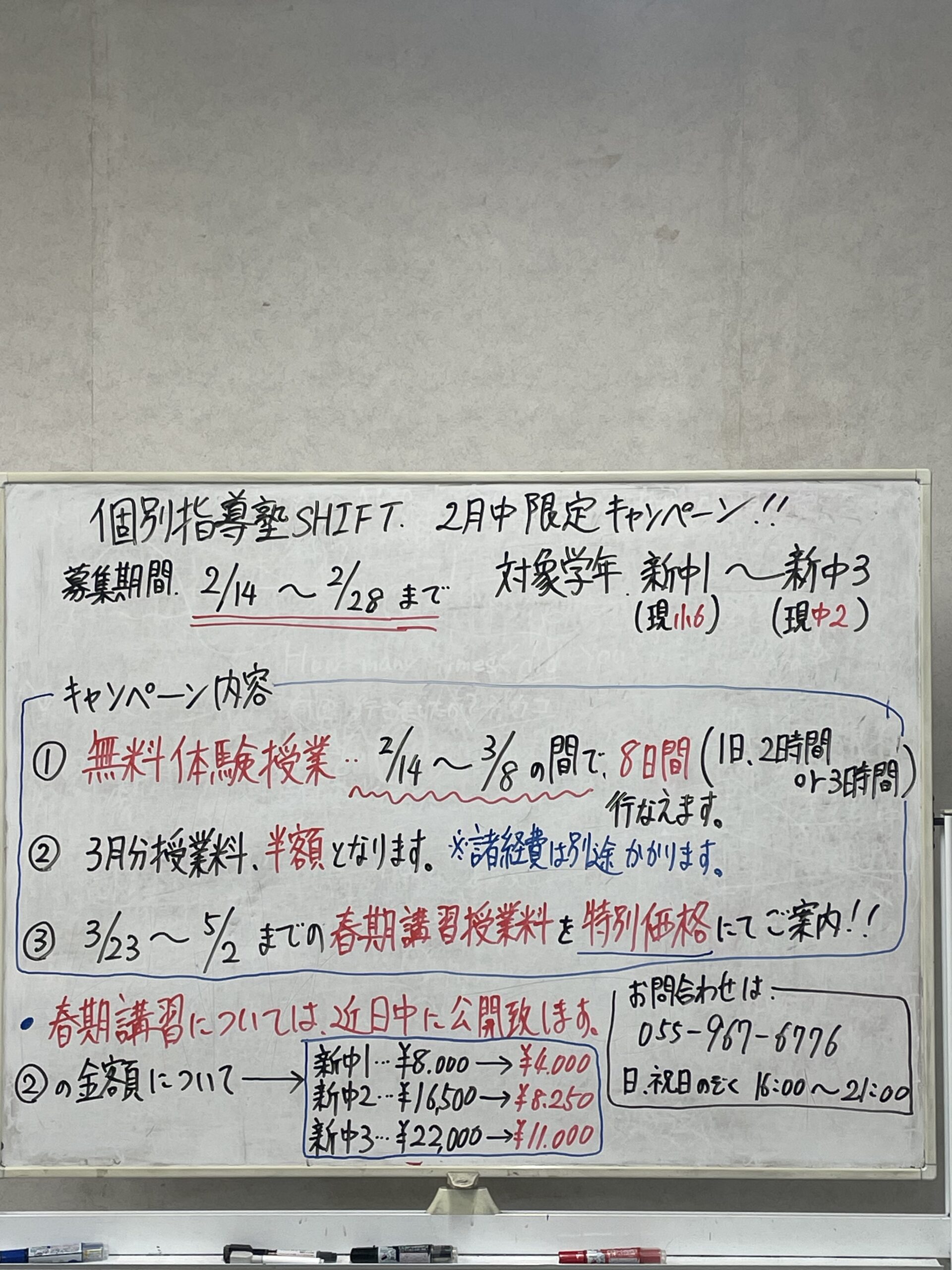個別指導塾shift #沼津市個別指導塾 #2月入塾キャンペーン#無料体験授業 #期間限定